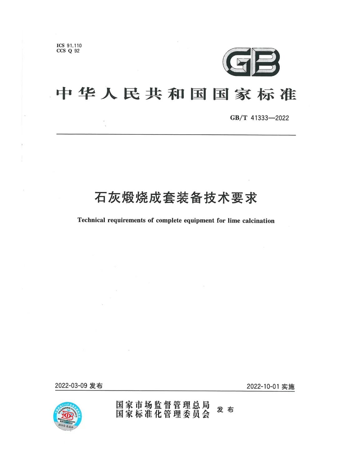 石灰行業(yè)《石灰煅燒成套裝備技術(shù)要求》(GB/T 41333-2022)最新標(biāo)準(zhǔn)于2022年3月9日正式發(fā)布,并將于2022年10月1日起實施。